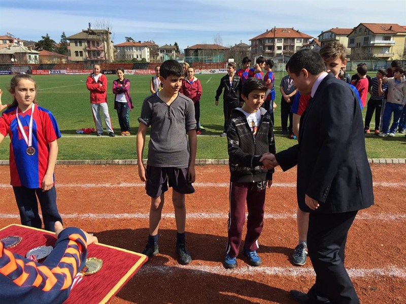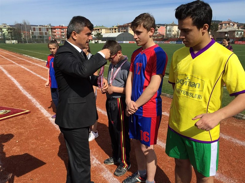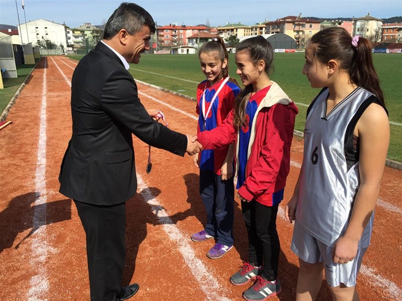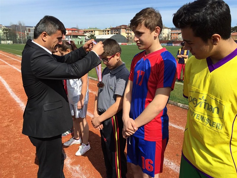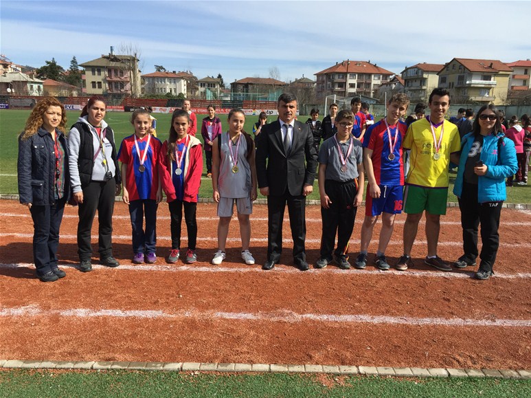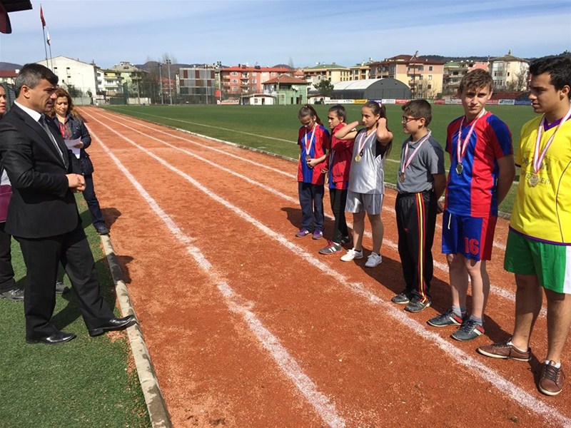 olurken, sporcular madalyalarını Gençlik Hizmetleri ve Spor İL Müdürü Ali ÖZDEMİR, Ulus İmam Hatip Ortaokulu Müdürü Adem ARSLAN, Şehit Necdet YİBO Müdürü Mehmet GENİŞ, Atletizm Hakemlerinden Raci AYDIN' dan aldılar.